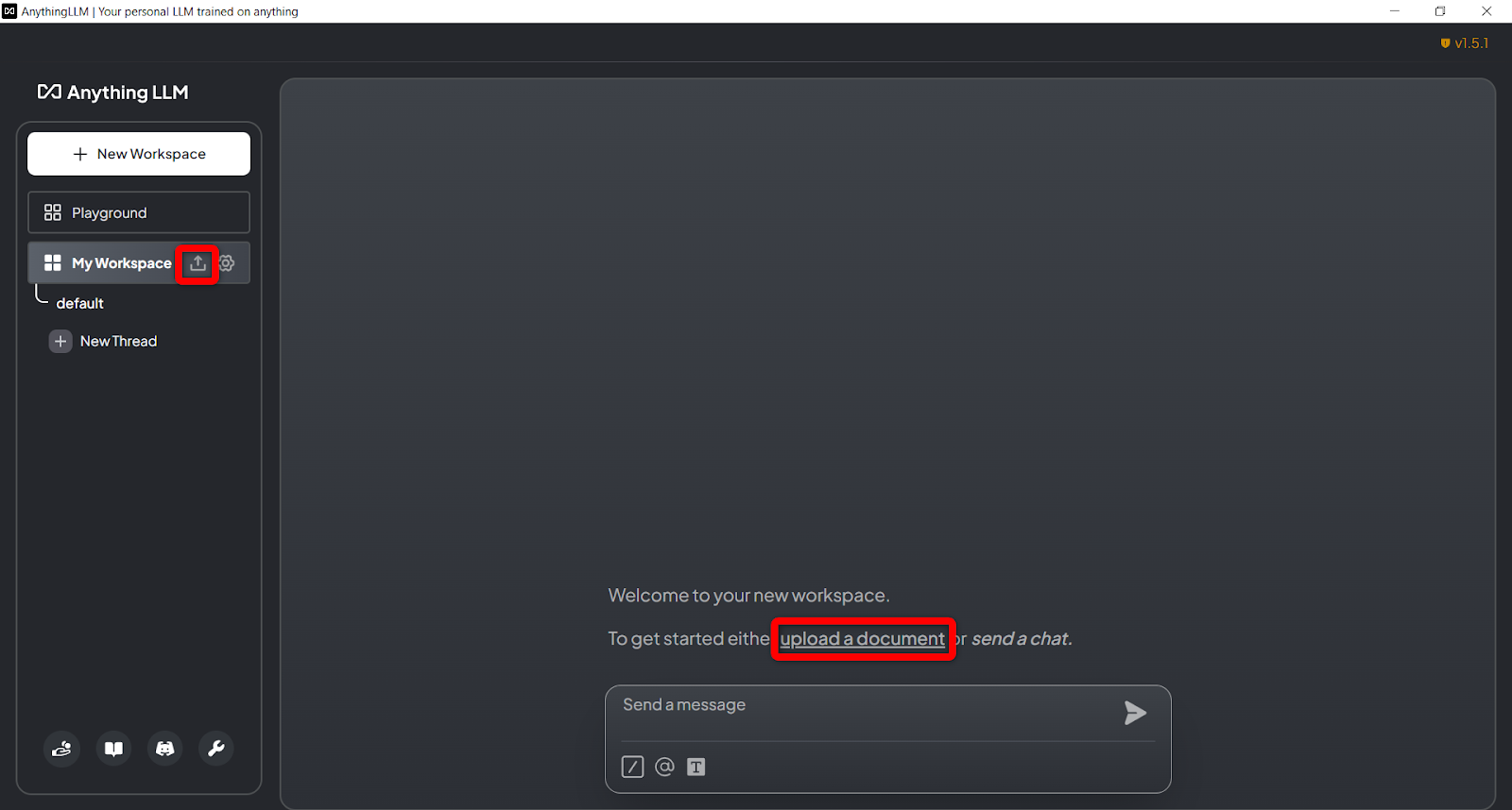 3. Click on the "upload a document" option on the chat window or click the upload symbol next to your Workspace name.
