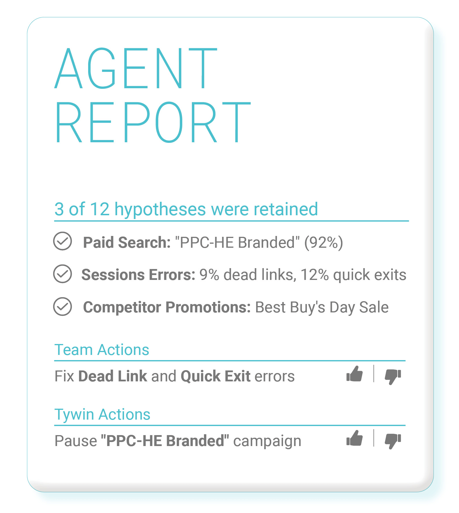 If sales are down, Tywin provides an explanation in plain language, automatically recommending and executing corrective actions.