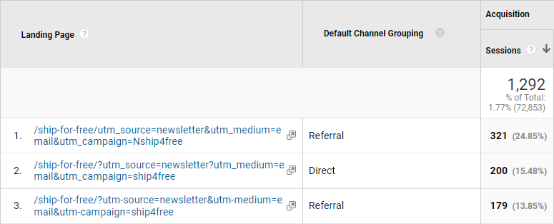 Here are some examples of improper campaign tracking parameters implementations: