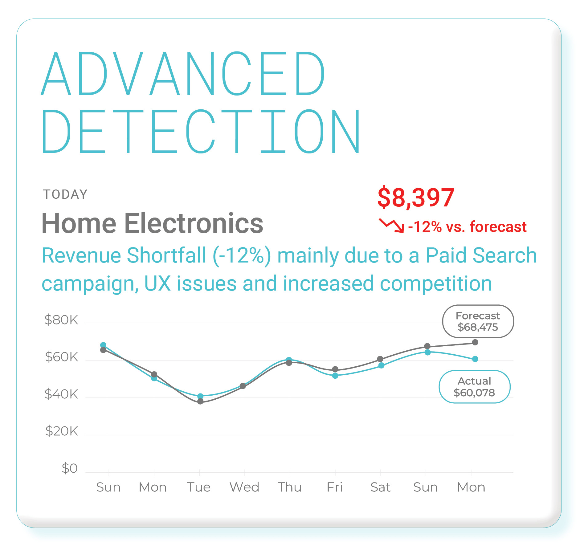If sales are down, Tywin provides an explanation in plain language, automatically recommending and executing corrective actions.